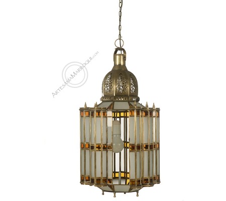 Shipments include a hanging chain and a screw-on bracket for standing. Optional electrical installation.