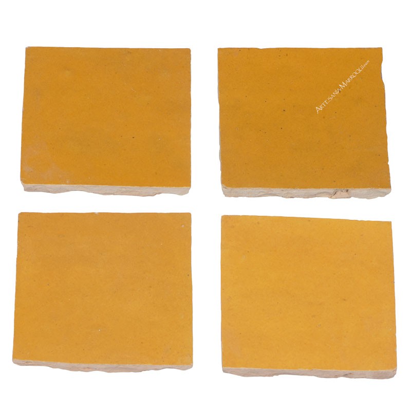 Mustard-colored zellige tile. The color intensity varies from tile to tile.