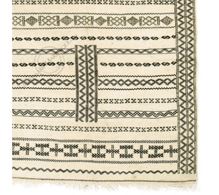 Off-white and black wool kilim.