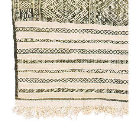 Kilim muy desteñido de diferentes tonos blancos , beige y verdes.