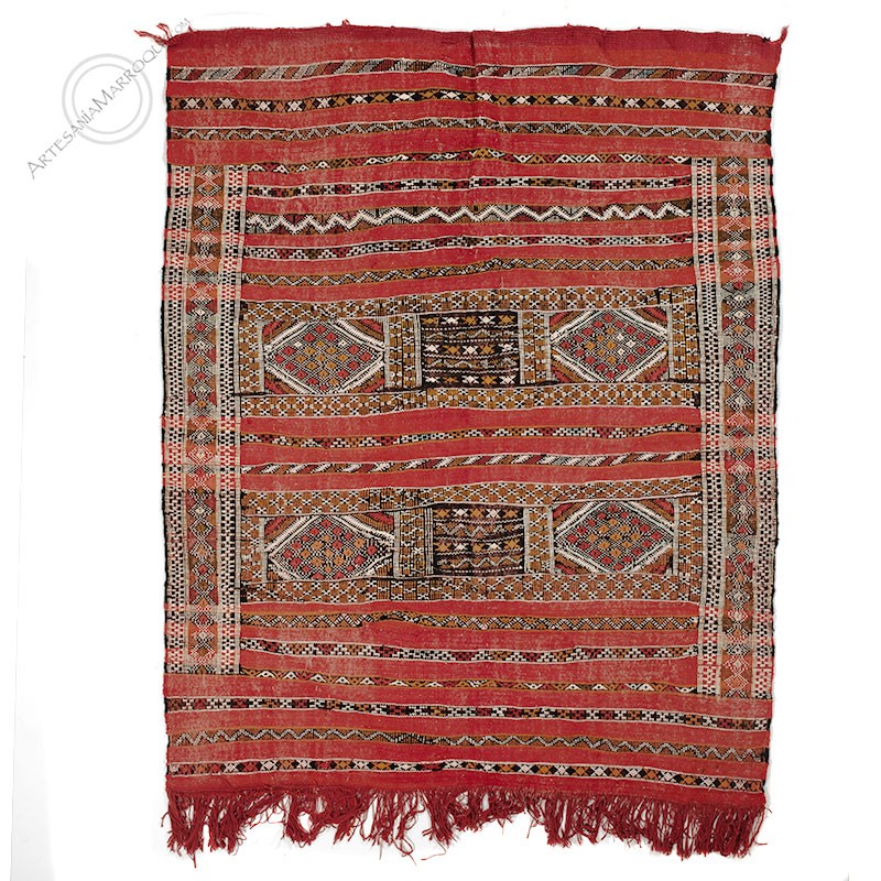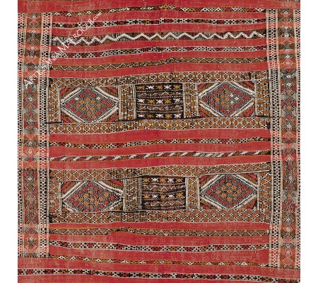 Kilim antiguo desteñido en perfecto estado de color rojo.