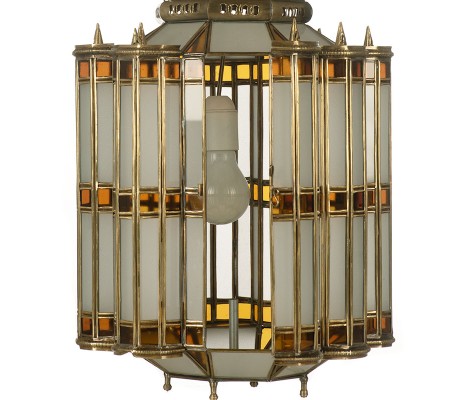 Material: chapa de aleación de cobre y cristales esmerilados y de color.