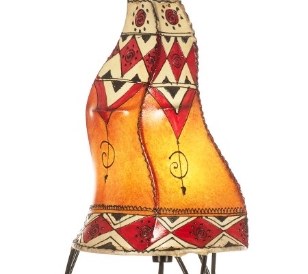 Lámpara de piel con dibujos hechos con la técnica de tatuaje de henna.