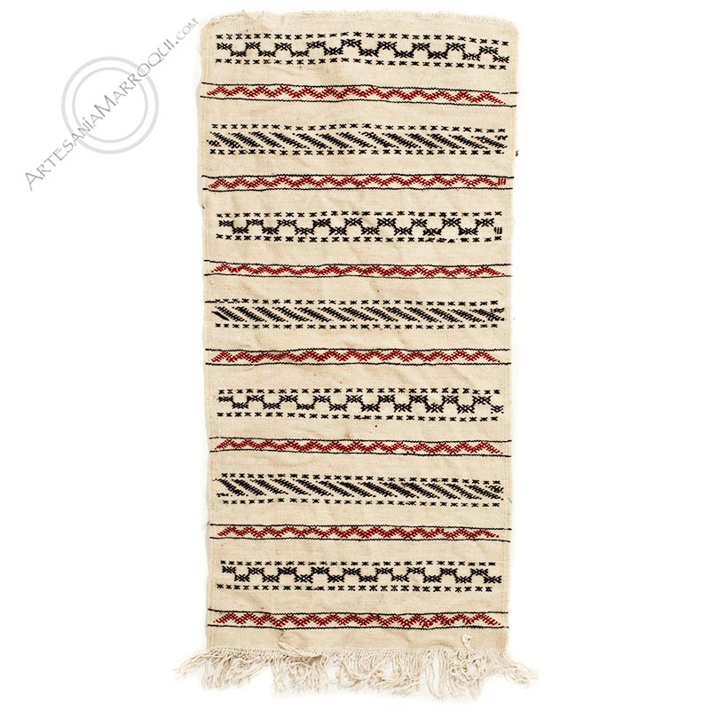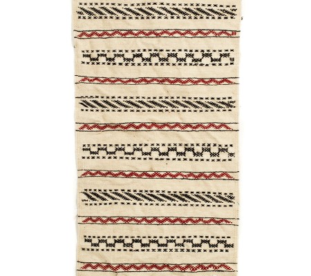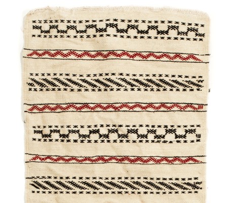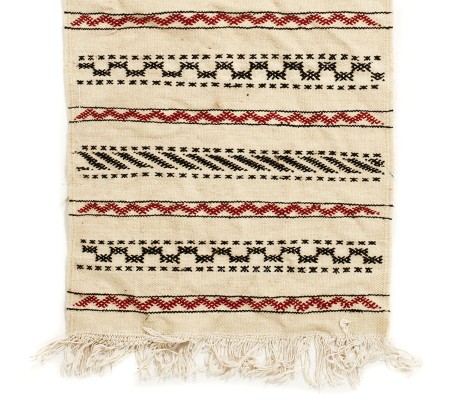 Kilim brut aux couleurs originales, fond en laine blanche aux motifs colorés.