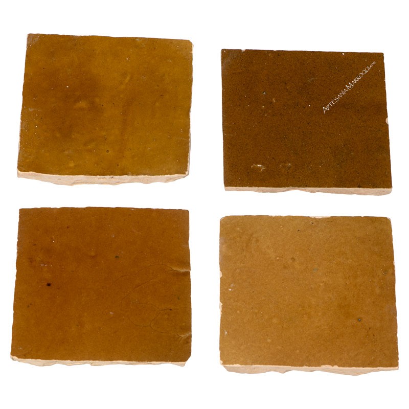 Carreau de zellige brun clair. L'intensité de la couleur varie d'un carreau à l'autre.