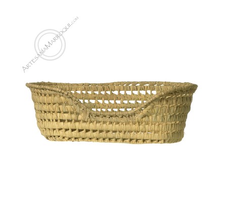 Panier ouvert en feuille de palmier, à rebord inférieur.